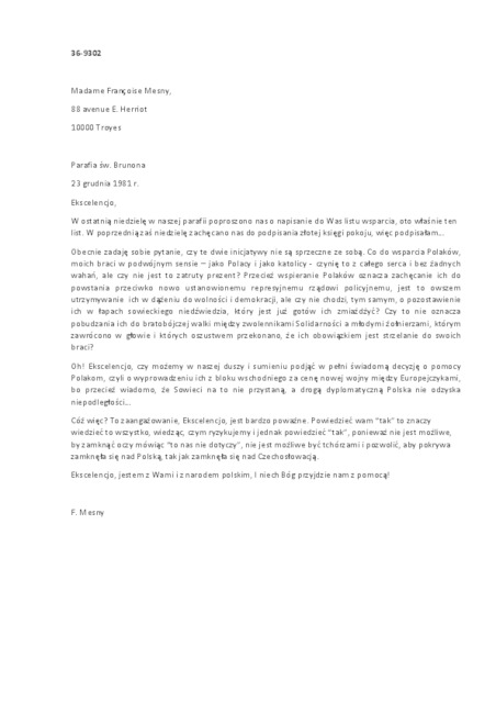 Kolekcja: Archiwa > Francuskie listy do księdza kardynała Józefa Glempa z okresu stanu wojennego > 36-9275-9428