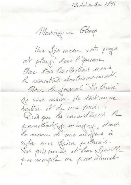 Kolekcja: Archiwa > Francuskie listy do księdza kardynała Józefa Glempa z okresu stanu wojennego > 36-9275-9428