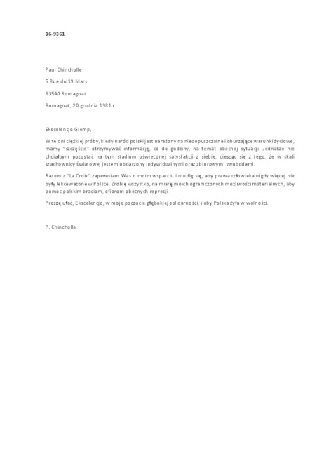 Kolekcja: Archiwa > Francuskie listy do księdza kardynała Józefa Glempa z okresu stanu wojennego > 36-9275-9428