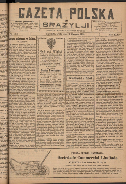 Gazeta Polska w Brazylji, 1925 No. 33 (12 sierpnia)