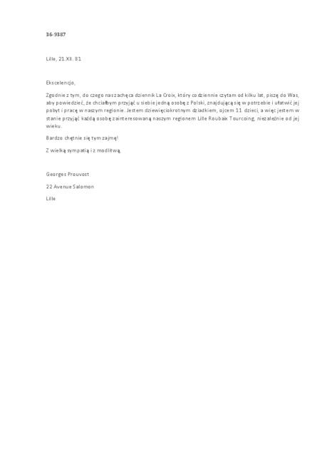 Kolekcja: | Archiwa > Francuskie listy do księdza kardynała Józefa Glempa z okresu stanu wojennego > 36-9275-9428 |