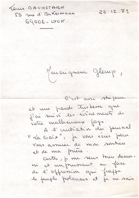 Kolekcja: Archiwa > Francuskie listy do księdza kardynała Józefa Glempa z okresu stanu wojennego > 36-9275-9428