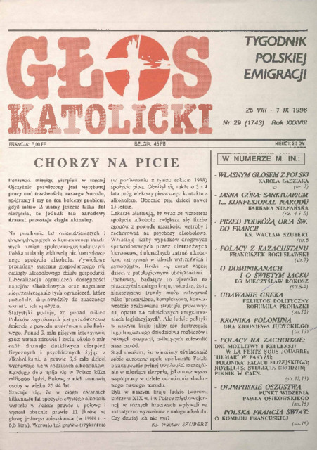 Głos Katolicki. R. 38: No. 29 (25 sierpnia-1 września 1996)
