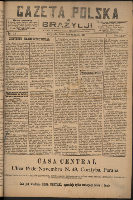 Gazeta Polska w Brazylji, 1926 No. 13 (31 marca)
