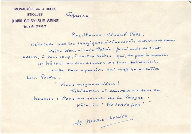Kolekcja: Archiwa > Francuskie listy do księdza kardynała Józefa Glempa z okresu stanu wojennego > 36-9429-9565