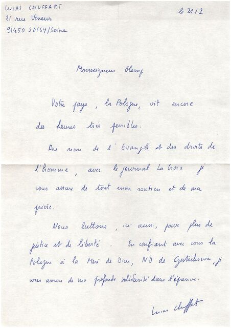 Kolekcja: | Archiwa > Francuskie listy do księdza kardynała Józefa Glempa z okresu stanu wojennego > 36-9429-9565 |