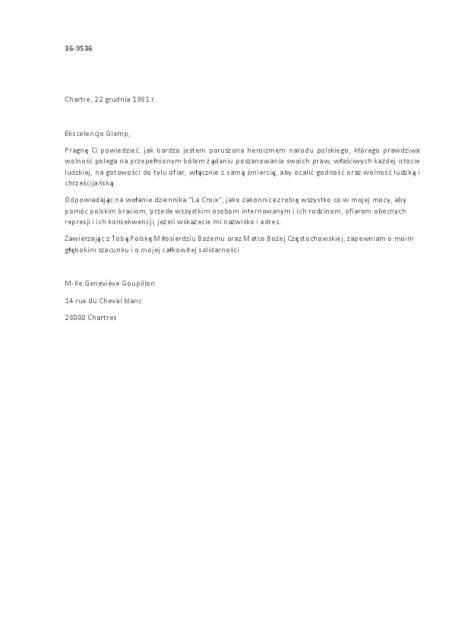 Kolekcja: | Archiwa > Francuskie listy do księdza kardynała Józefa Glempa z okresu stanu wojennego > 36-9429-9565 |
