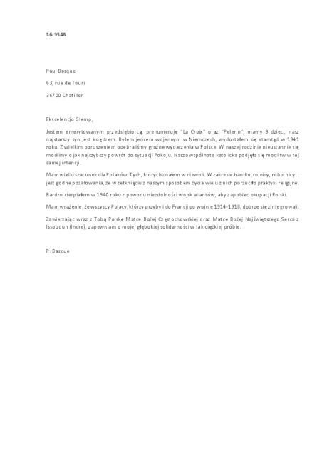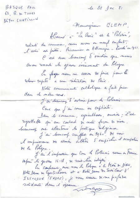 Kolekcja: Archiwa > Francuskie listy do księdza kardynała Józefa Glempa z okresu stanu wojennego > 36-9429-9565
