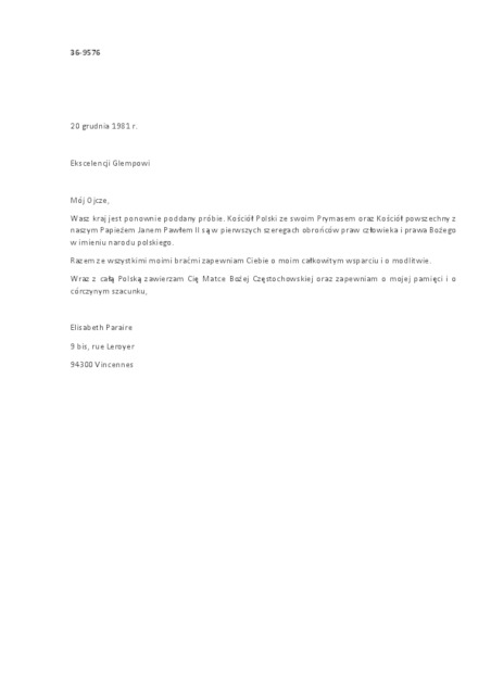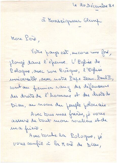 Kolekcja: | Archiwa > Francuskie listy do księdza kardynała Józefa Glempa z okresu stanu wojennego > 36-9566-9681 |