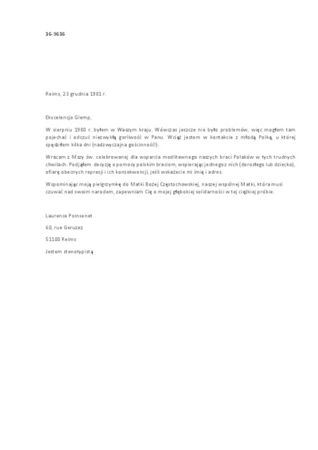 | Kolekcja: | Archiwa > Francuskie listy do księdza kardynała Józefa Glempa z okresu stanu wojennego > 36-9566-9681 |