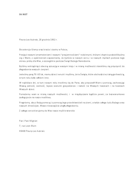 Kolekcja: Archiwa > Francuskie listy do księdza kardynała Józefa Glempa z okresu stanu wojennego > 36-9566-9681