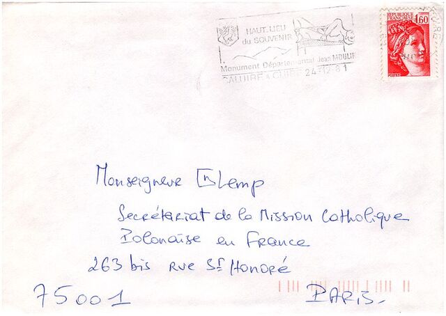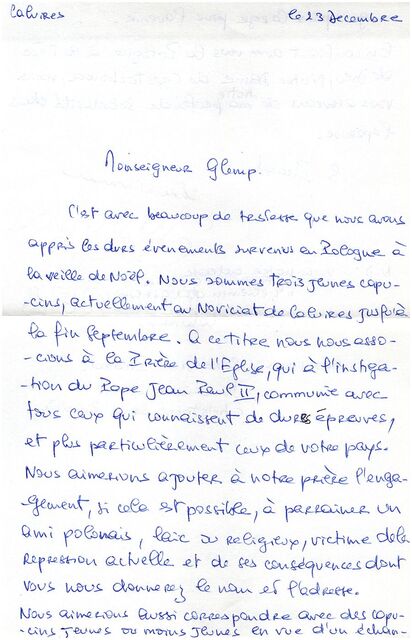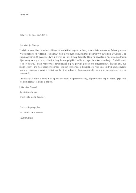 Kolekcja: Archiwa > Francuskie listy do księdza kardynała Józefa Glempa z okresu stanu wojennego > 36-9566-9681