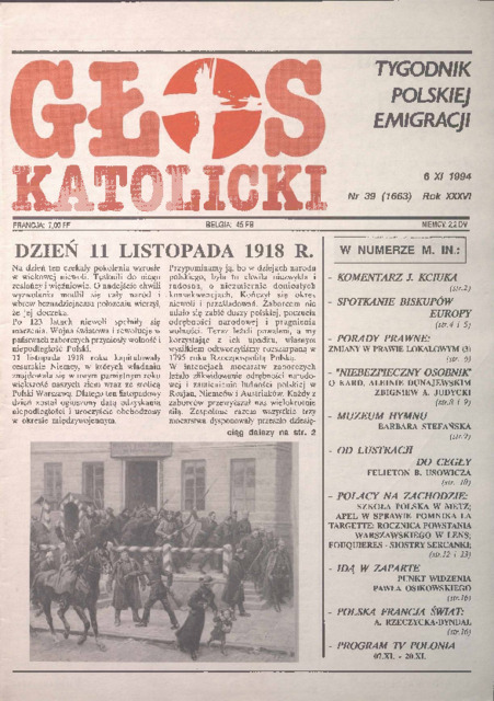 Głos Katolicki. R. 36: No. 39 (6 listopada 1994)