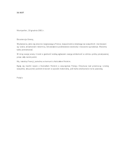 Kolekcja: | Archiwa > Francuskie listy do księdza kardynała Józefa Glempa z okresu stanu wojennego > 36-9682-9781 |