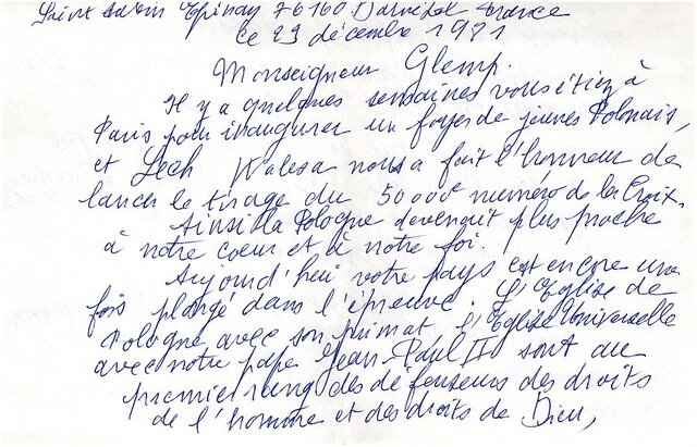 Kolekcja: | Archiwa > Francuskie listy do księdza kardynała Józefa Glempa z okresu stanu wojennego > 36-9682-9781 |