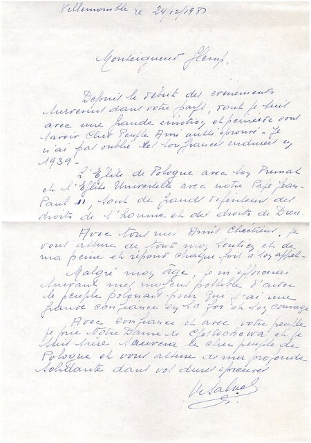 Kolekcja: Archiwa > Francuskie listy do księdza kardynała Józefa Glempa z okresu stanu wojennego > 36-9682-9781
