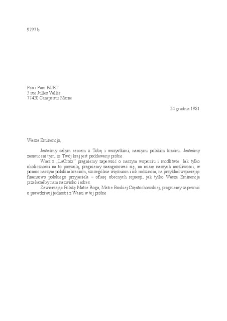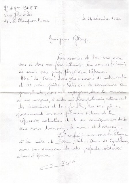 Kolekcja: Archiwa > Francuskie listy do księdza kardynała Józefa Glempa z okresu stanu wojennego > 36-9782-9908