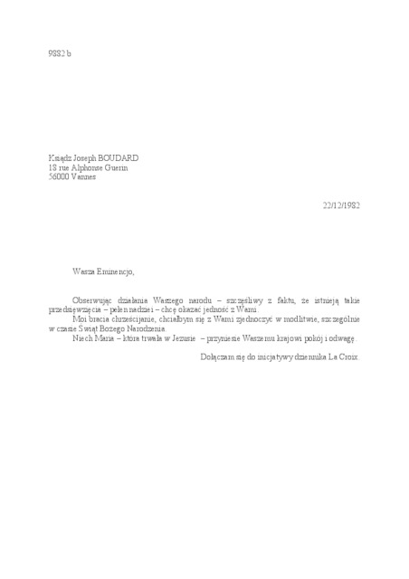 Kolekcja: | Archiwa > Francuskie listy do księdza kardynała Józefa Glempa z okresu stanu wojennego > 36-9782-9908 |