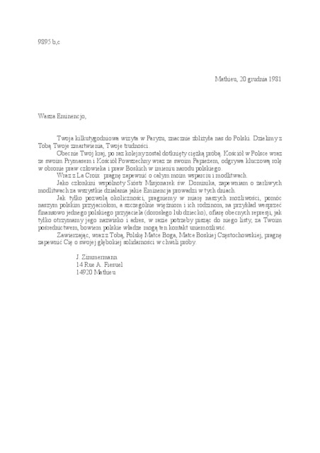 | Kolekcja: | Archiwa > Francuskie listy do księdza kardynała Józefa Glempa z okresu stanu wojennego > 36-9782-9908 |