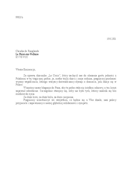 Kolekcja: | Archiwa > Francuskie listy do księdza kardynała Józefa Glempa z okresu stanu wojennego > 36-9782-9908 |