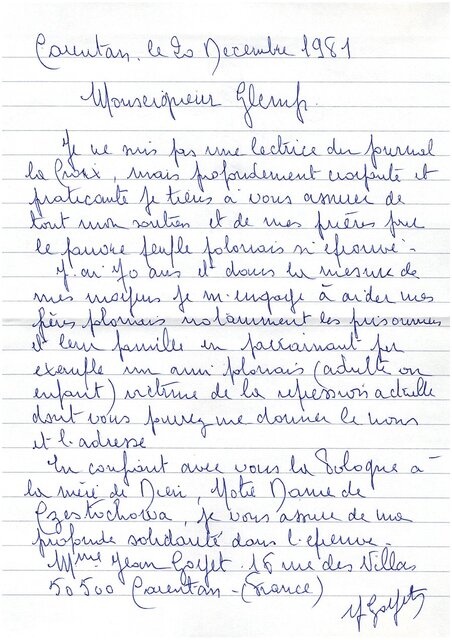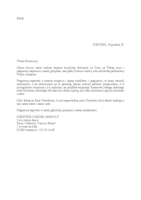 Kolekcja: Archiwa > Francuskie listy do księdza kardynała Józefa Glempa z okresu stanu wojennego > 36-9782-9908