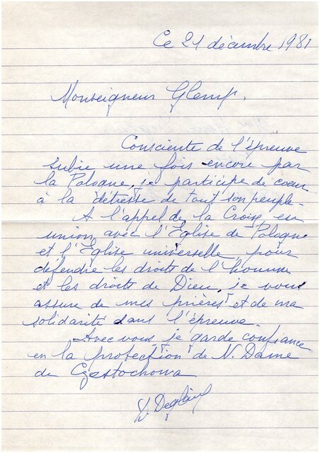 Kolekcja: | Archiwa > Francuskie listy do księdza kardynała Józefa Glempa z okresu stanu wojennego > 36-9782-9908 |