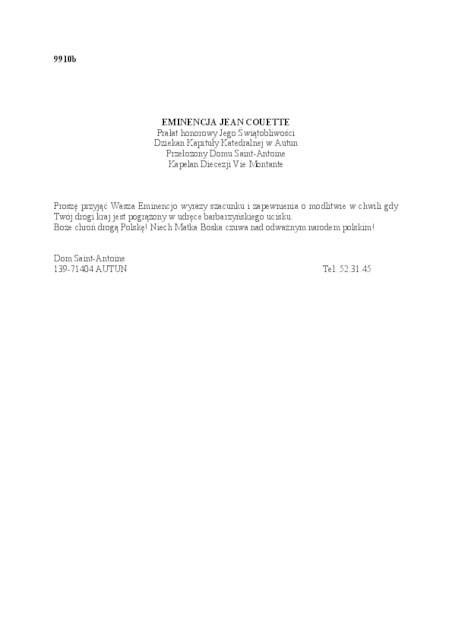 Kolekcja: | Archiwa > Francuskie listy do księdza kardynała Józefa Glempa z okresu stanu wojennego > 36-9909-10029 |