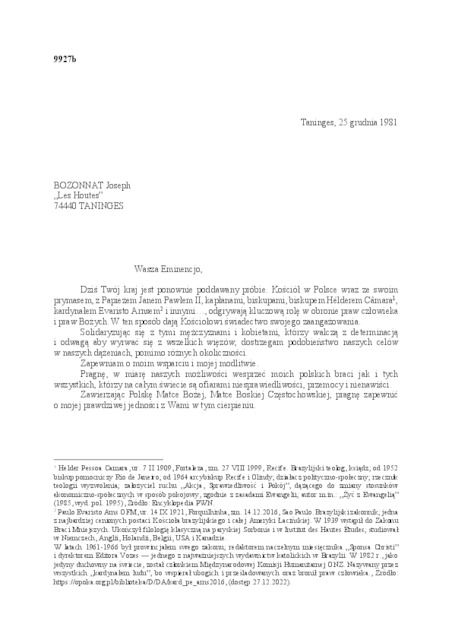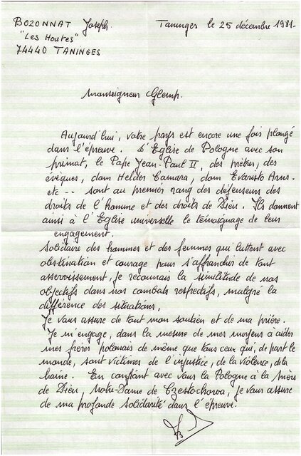 Kolekcja: Archiwa > Francuskie listy do księdza kardynała Józefa Glempa z okresu stanu wojennego > 36-9909-10029