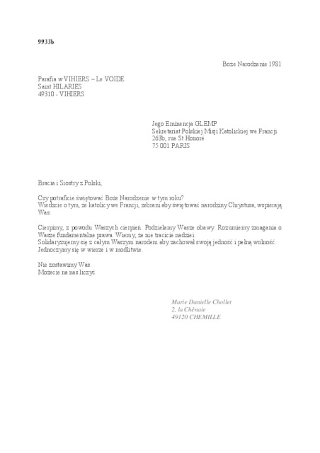 Kolekcja: | Archiwa > Francuskie listy do księdza kardynała Józefa Glempa z okresu stanu wojennego > 36-9909-10029 |