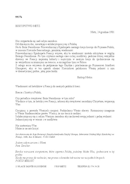 | Kolekcja: | Archiwa > Francuskie listy do księdza kardynała Józefa Glempa z okresu stanu wojennego > 36-9909-10029 |