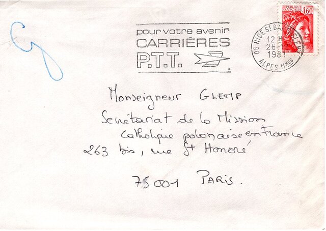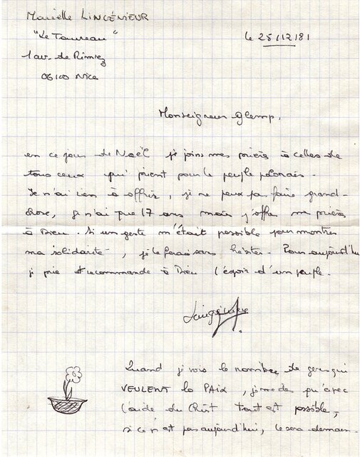 Kolekcja: Archiwa > Francuskie listy do księdza kardynała Józefa Glempa z okresu stanu wojennego > 36-9909-10029