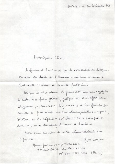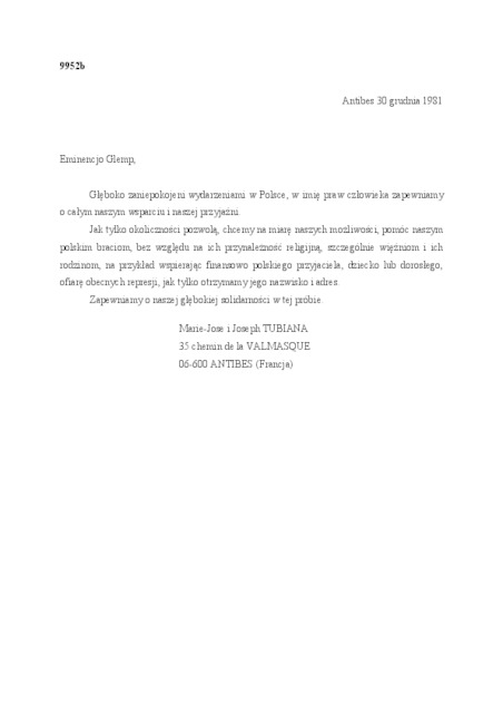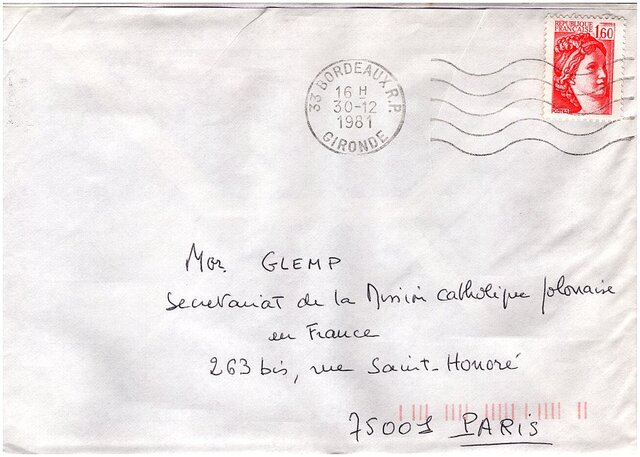 Kolekcja: Archiwa > Francuskie listy do księdza kardynała Józefa Glempa z okresu stanu wojennego > 36-9909-10029