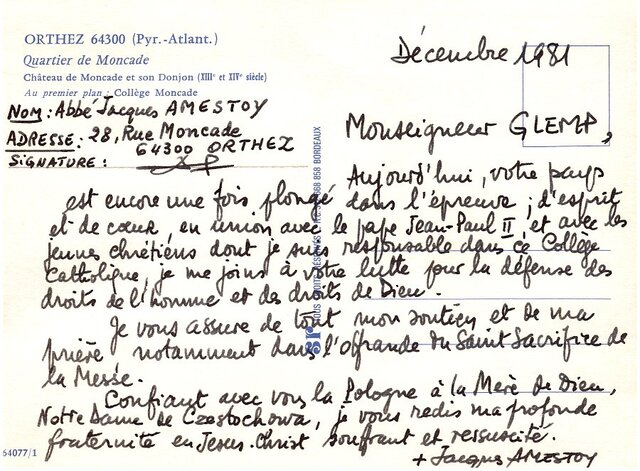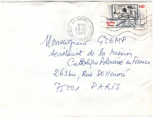 Kolekcja: Archiwa > Francuskie listy do księdza kardynała Józefa Glempa z okresu stanu wojennego > 36-9909-10029