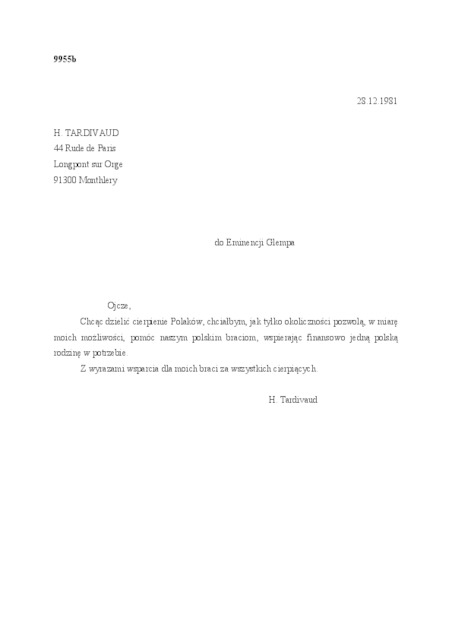 Kolekcja: Archiwa > Francuskie listy do księdza kardynała Józefa Glempa z okresu stanu wojennego > 36-9909-10029