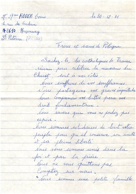 Kolekcja: Archiwa > Francuskie listy do księdza kardynała Józefa Glempa z okresu stanu wojennego > 36-9909-10029