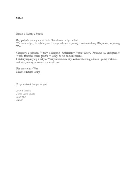 Kolekcja: | Archiwa > Francuskie listy do księdza kardynała Józefa Glempa z okresu stanu wojennego > 36-9909-10029 |