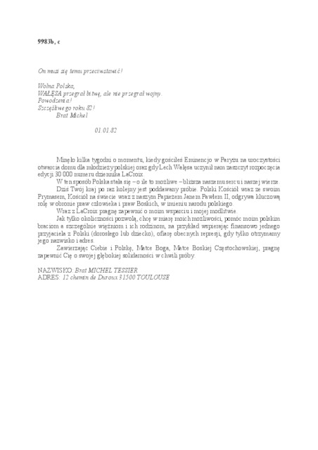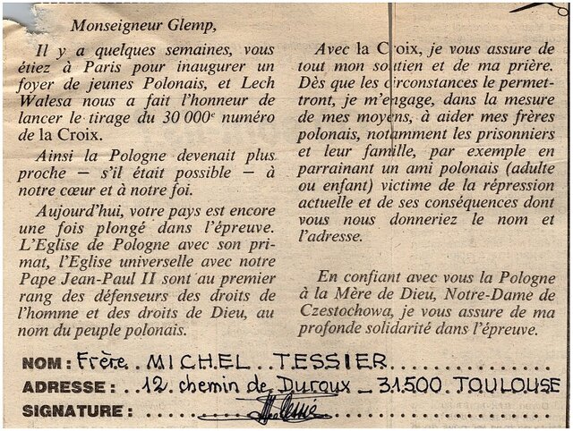Kolekcja: Archiwa > Francuskie listy do księdza kardynała Józefa Glempa z okresu stanu wojennego > 36-9909-10029