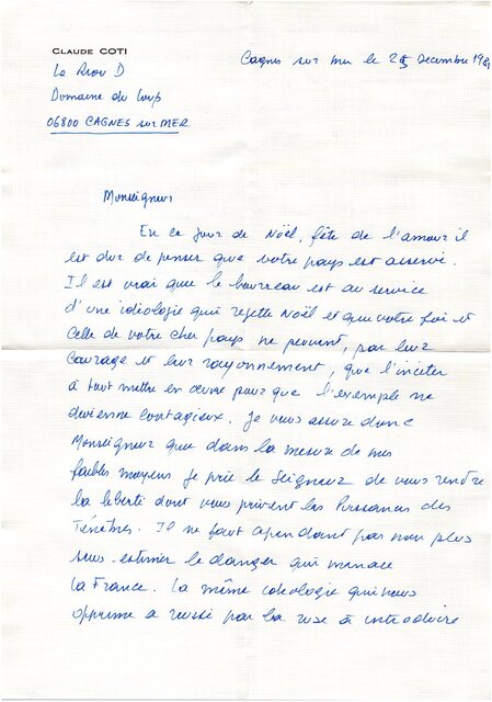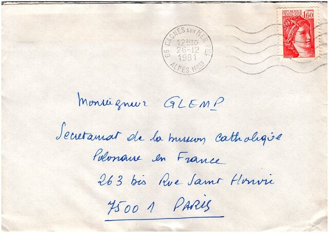Kolekcja: Archiwa > Francuskie listy do księdza kardynała Józefa Glempa z okresu stanu wojennego > 36-9909-10029
