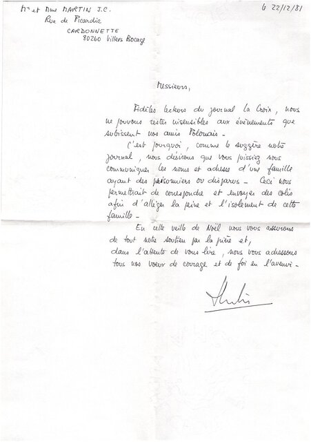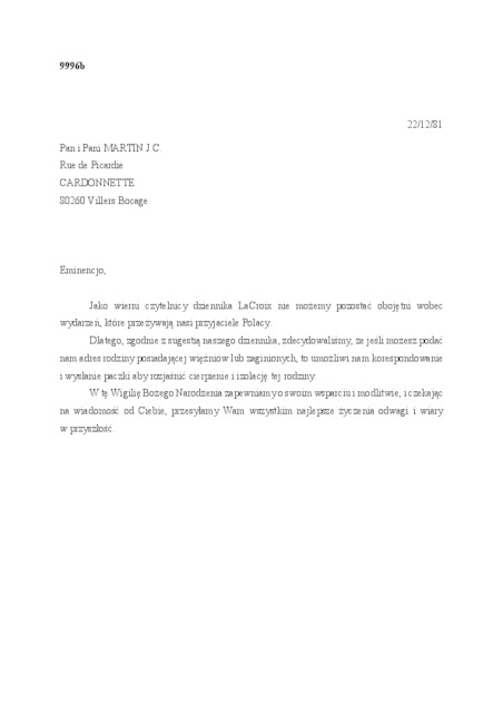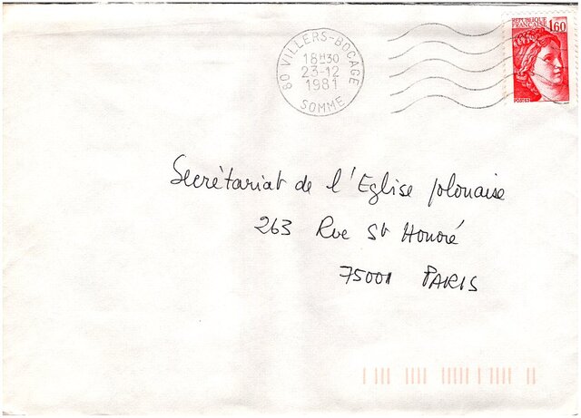 Kolekcja: Archiwa > Francuskie listy do księdza kardynała Józefa Glempa z okresu stanu wojennego > 36-9909-10029