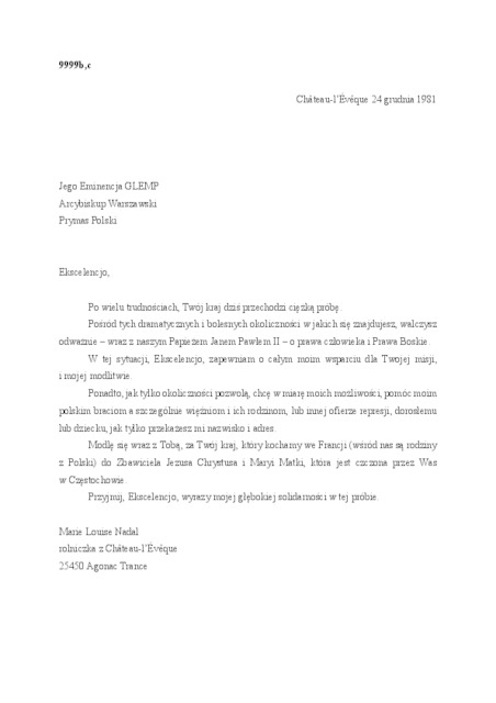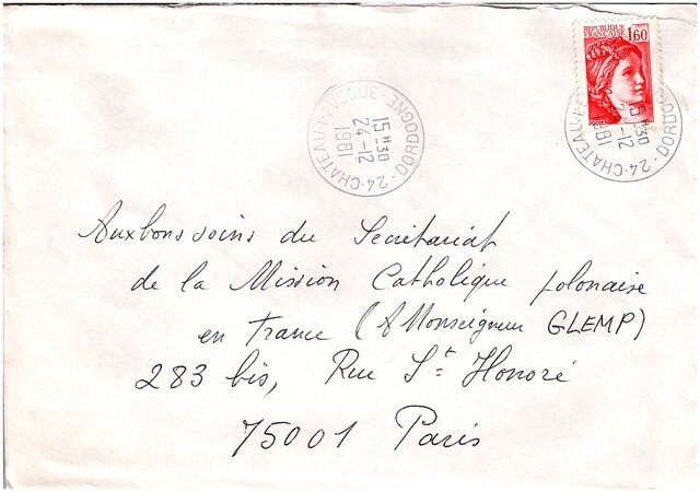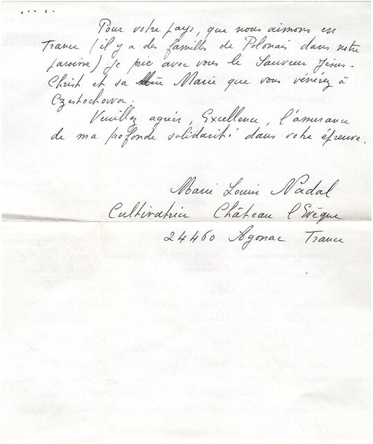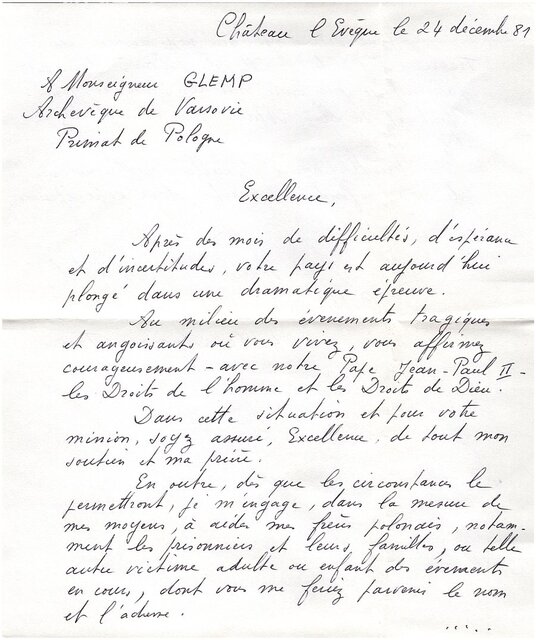Kolekcja: Archiwa > Francuskie listy do księdza kardynała Józefa Glempa z okresu stanu wojennego > 36-9909-10029
