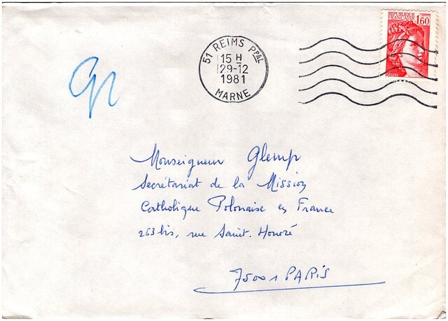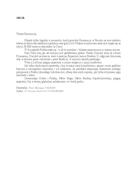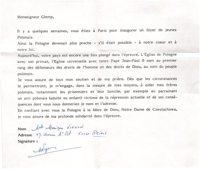 Kolekcja: Archiwa > Francuskie listy do księdza kardynała Józefa Glempa z okresu stanu wojennego > 36-9909-10029