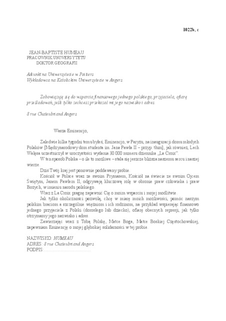 | Kolekcja: | Archiwa > Francuskie listy do księdza kardynała Józefa Glempa z okresu stanu wojennego > 36-9909-10029 |