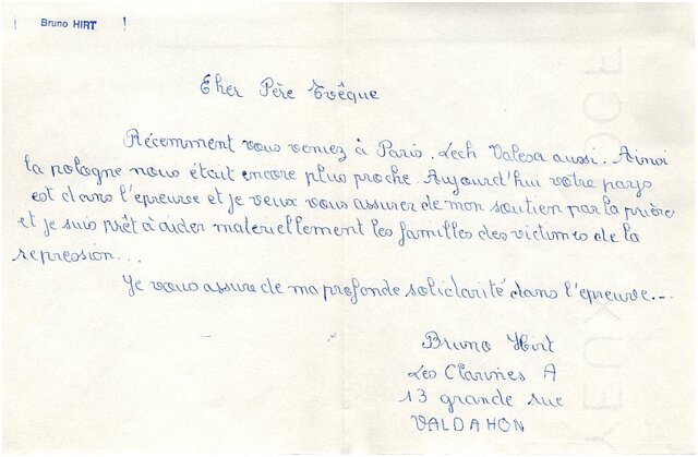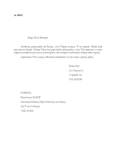 Kolekcja: Archiwa > Francuskie listy do księdza kardynała Józefa Glempa z okresu stanu wojennego > 36-10030-10166