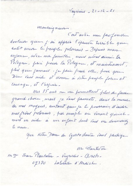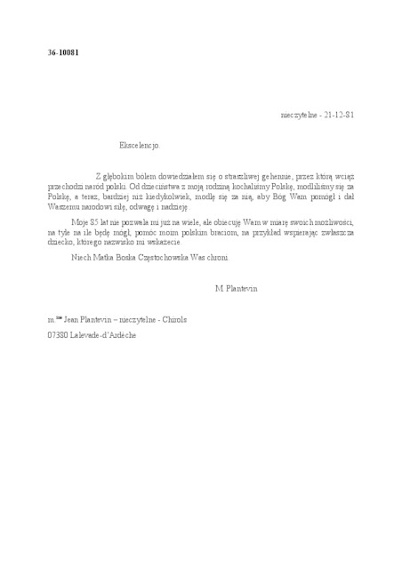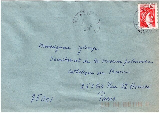 Kolekcja: Archiwa > Francuskie listy do księdza kardynała Józefa Glempa z okresu stanu wojennego > 36-10030-10166