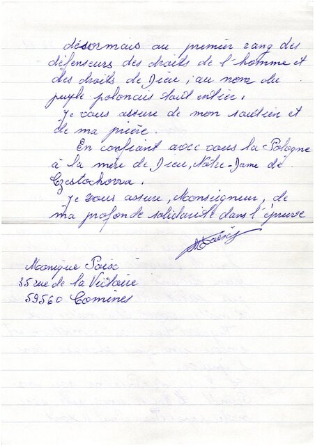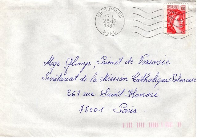 Kolekcja: Archiwa > Francuskie listy do księdza kardynała Józefa Glempa z okresu stanu wojennego > 36-10030-10166