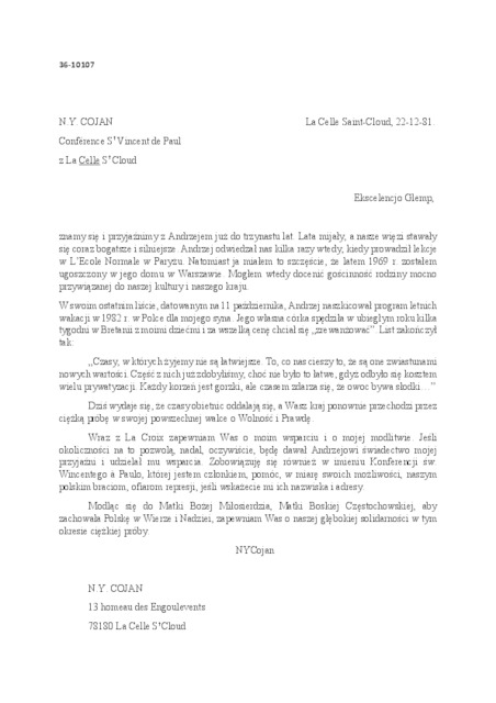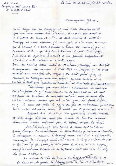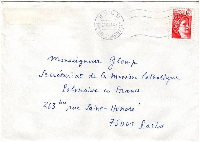 Kolekcja: Archiwa > Francuskie listy do księdza kardynała Józefa Glempa z okresu stanu wojennego > 36-10030-10166