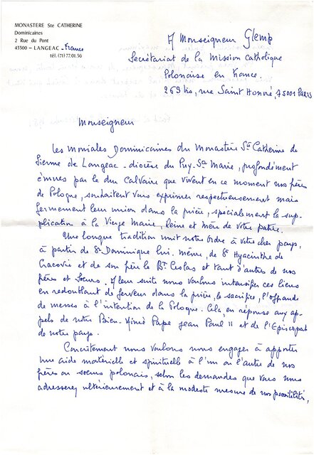 Kolekcja: | Archiwa > Francuskie listy do księdza kardynała Józefa Glempa z okresu stanu wojennego > 36-10030-10166 |