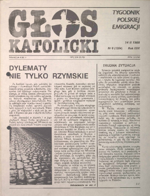 Słowa kluczowe: Tygodnik ; Czasopismo polonijne ; Francja ; Paryż ; Polska Misja Katolicka we Francji