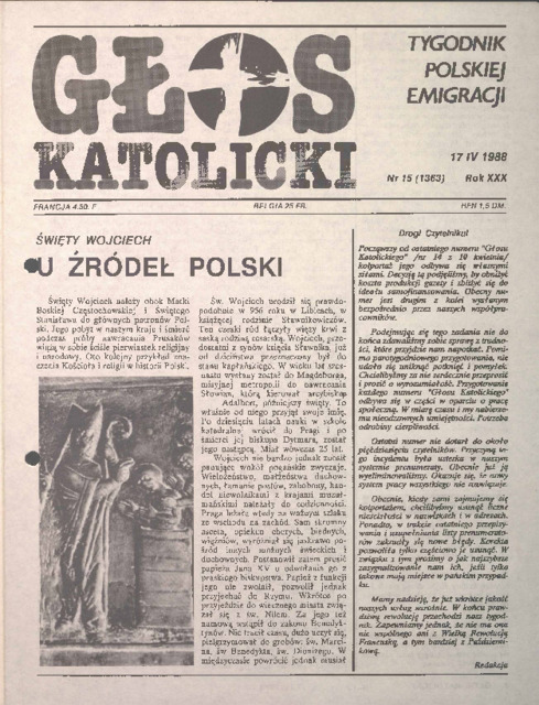 Słowa kluczowe: Tygodnik ; Czasopismo polonijne ; Francja ; Paryż ; Polska Misja Katolicka we Francji