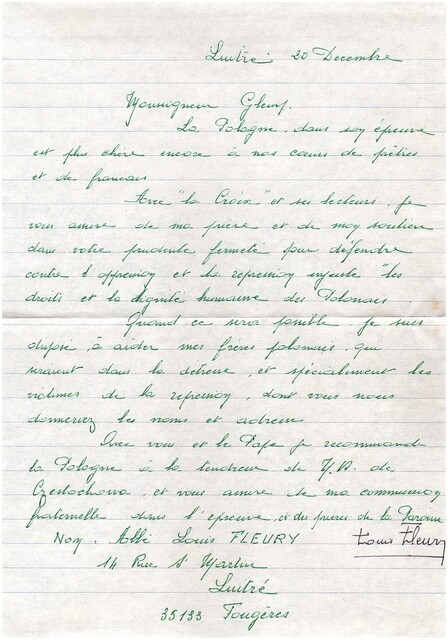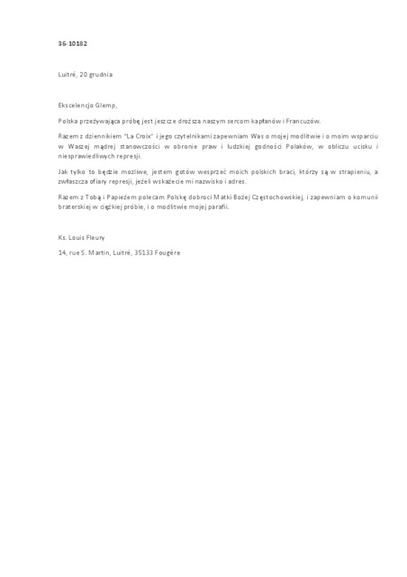 Kolekcja: Archiwa > Francuskie listy do księdza kardynała Józefa Glempa z okresu stanu wojennego > 36-10167-10287